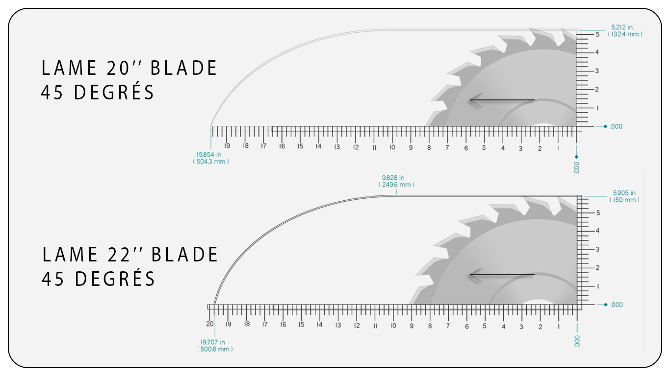 • Lame de scie 20'' ou 22'' (selon étude de profilés)