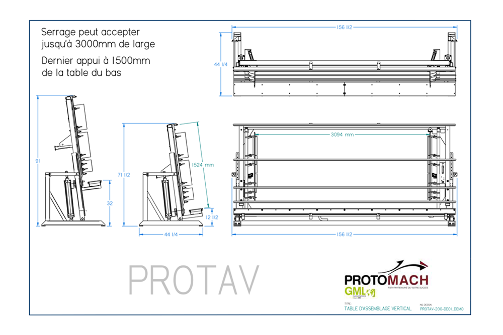 Capacité de serrage à 3094 mm.
